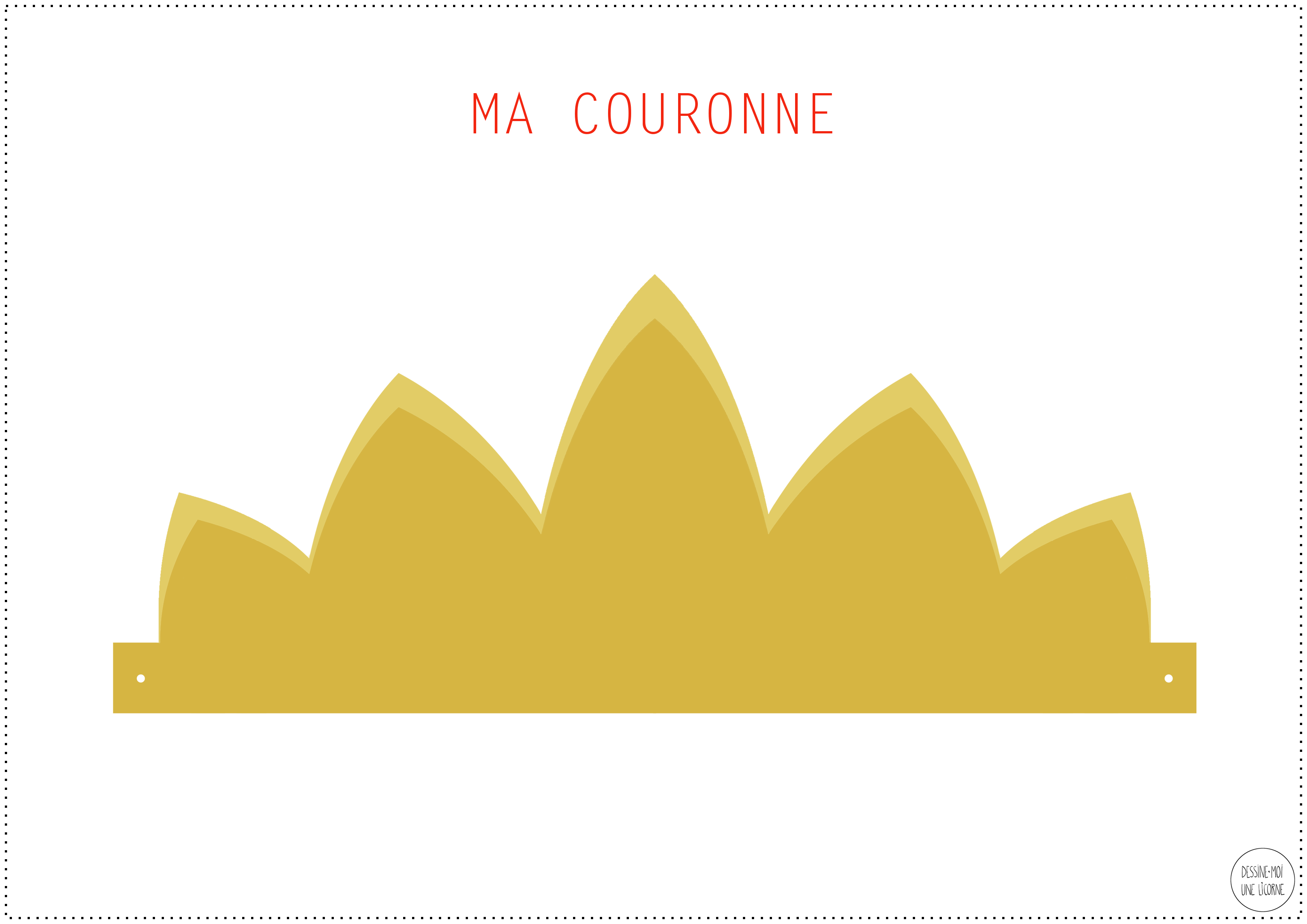 1 • Imprimer la couronne • Découper la couronne • Percer les deux trous 2 • Passer un ruban dans les deux trous, pour pouvoir ajuster la taille de la couronne Ça y est, elle est prête à être posée sur la tête du ou de la gagnant.e de la fève ! :)