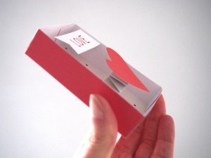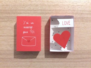 J’ai donc pensé à tous les gens qui, comme moi, ne sont pas très à l’aise à l’oral, ne trouvent jamais le bon moment, trouvent que ça fait bizarre de le dire… Et j’ai créé cette petite pocket box pour faire passer directement le message ! Ici, pas de doutes, le cœur est assez explicite ^^. C’est comme une petite boîte surprise pleine d’amour, avec un cœur qui bondit en dehors de la boite quand on l’ouvre (oui, enfin bondir, je m’emballe peut-être un peu ^^). Et il y a même un message que vous pouvez personnaliser !