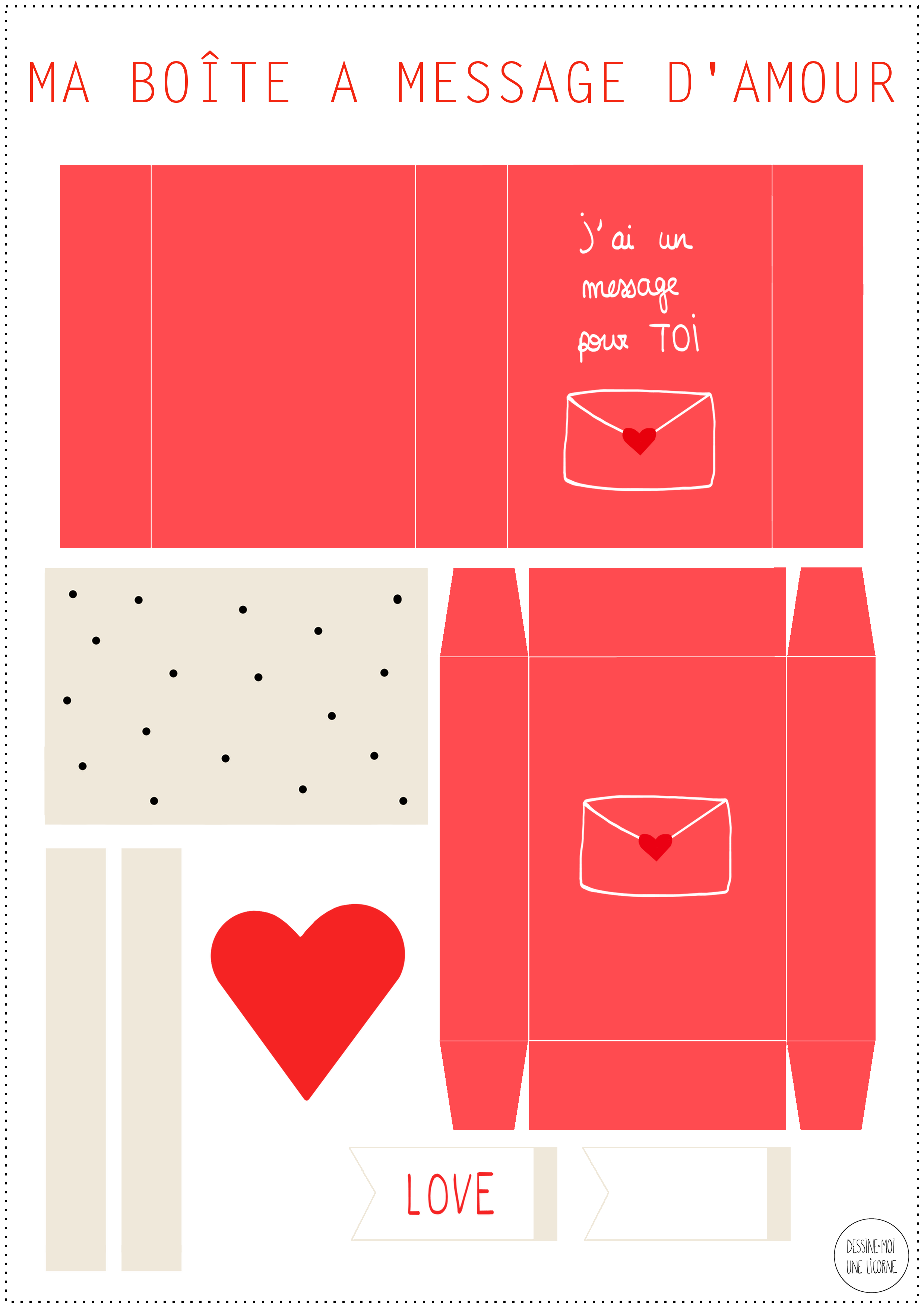 DIY - BOÎTE À MESSAGE D'AMOUR Matériel : • la planche de la boîte téléchargeable ici • 1 feuille de papier bristol • des ciseaux • un outil à embosser (ou un capuchon de stylo) • de la colle Étapes :