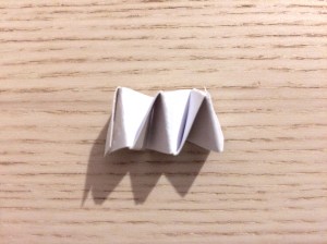 5 • Replier chaque languette l'une sur l'autre à tour de rôle, jusqu'à obtenir un petit accordéon • Une fois l'accordéon fini, coller le dernier bout de languette sur l'autre