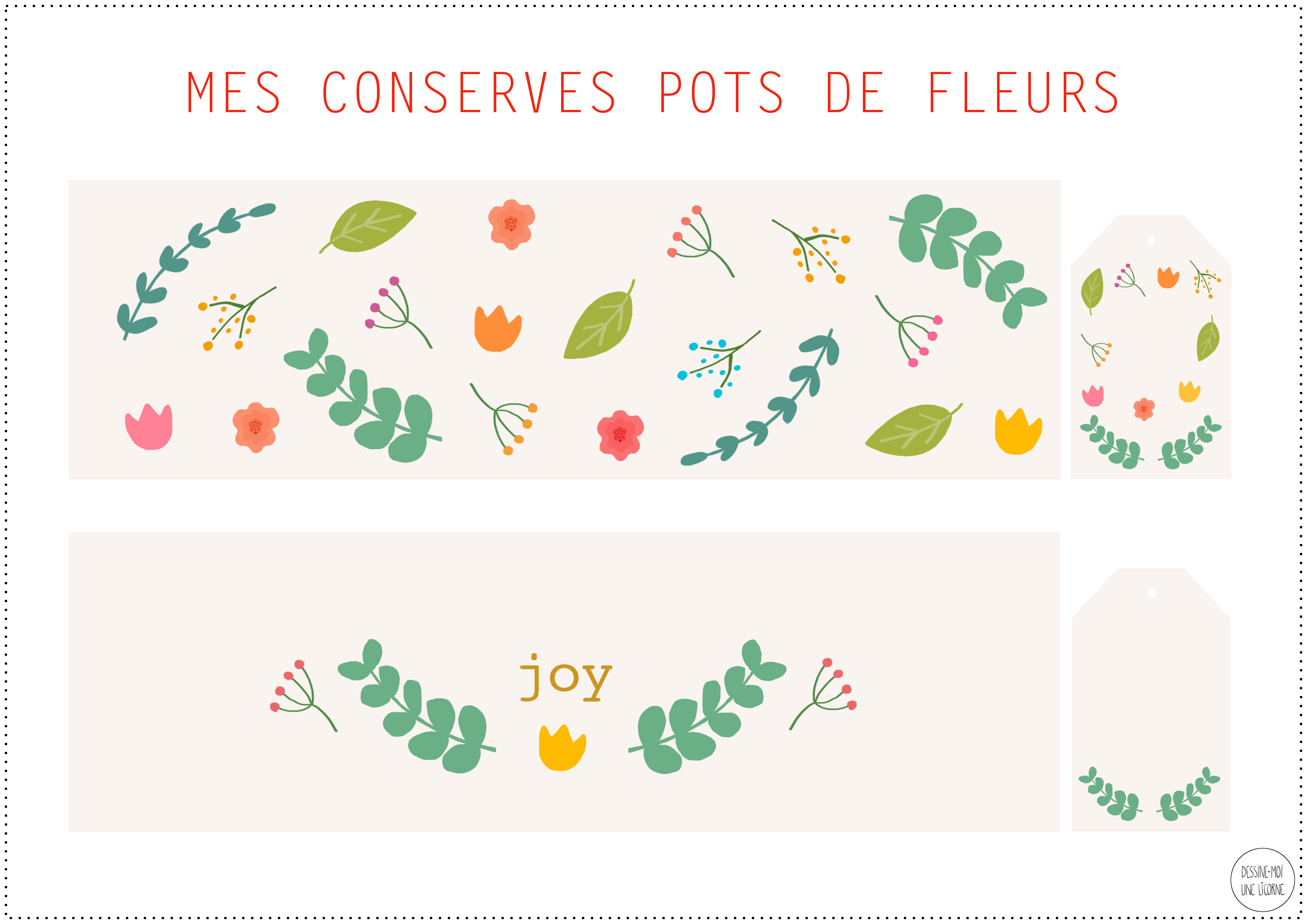 Pour ce DIY, je suis donc partie de petites boîtes de conserve (par exemple les conserves de maïs) mais vous pouvez très bien décider de faire ce DIY avec de plus grandes boîtes de conserve, je vous explique comment à la fin. Je vous ai préparé 2 gabarits et 2 étiquettes (pour indiquer la plante dont il s’agit ou écrire un mot doux si vous décidez de l’offrir ;) : un tout floral et un avec le mot « joy », comme pour les photophores fleuris.