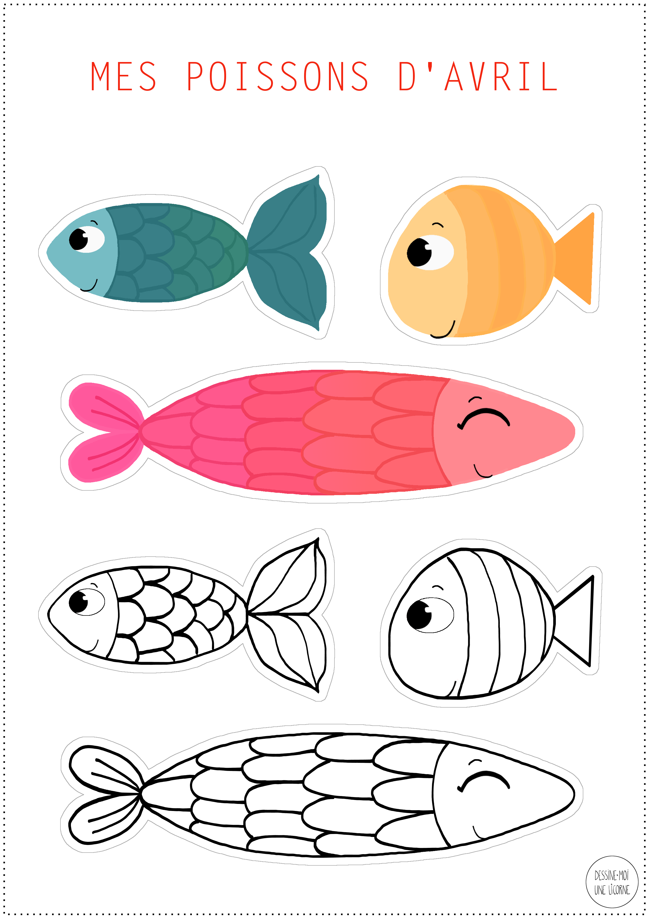 DIY - POISSONS D'AVRIL Matériel : • les poissons à télécharger ici • 1 feuille de papier classique • des ciseaux • des crayons de couleur ou feutres • du joli scotch ou masking tape Étapes1 • Imprimer les poissons • Colorier les poissons noirs et blancs • Découper les poissons