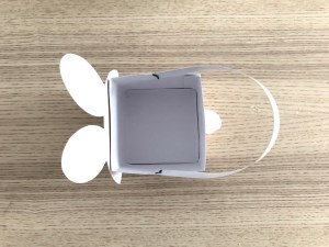 2 • Marquer les traits blancs du panier avec un outil à embosser • Plier chaque pan du panier
