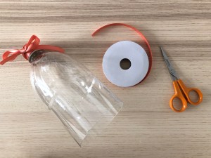 DIY - UPCYCLING - BOUTEILLE CLOCHE DÉCORATIVE Matériel : • 1 bouteille en plastique (de préférence avec un haut en dôme) • du carton • des ciseaux : un gros modèle et un modèle plus fin • un feutre • du joli masking tape, du scotch ou joli ruban Étapes :1 • Laver la bouteille en plastique • Retirer son étiquette et son bouchon • Tracer le bas de la cloche avec un feutre à environ 17 cm du bouchon