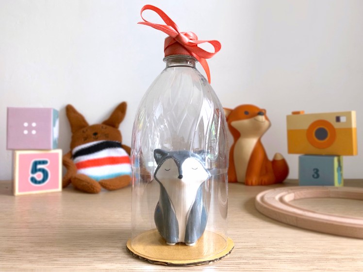 4 • Poser la cloche sur le carton et tracer le contour en ajoutant environ 3-5mm • Découper le rond de carton pour en faire le socle de la cloche Ça y est, c'est prêt ! Vous pouvez mettre une figurine, une guirlande lumineuse led ou autre chose de votre choix sur le socle en carton et mettre tout ça sous la cloche !