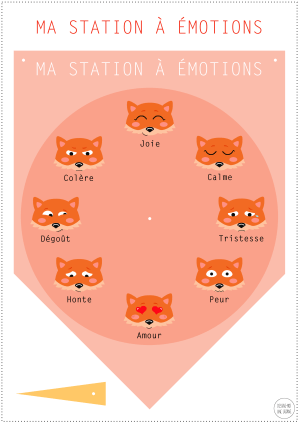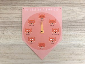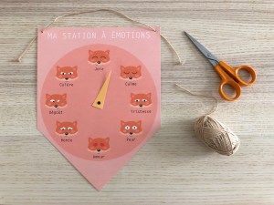 Alors quand j’ai réalisé la station météo, j’ai tout de suite pensé à faire la même station mais pour les émotions ! Je pense que c’est un outil pratique qui complète parfaitement les affiches éducatives théoriques et qui apporte un angle différent de la « tête à émotions ». Une fois accrochée au mur, cette petite station devient un baromètre où les enfants peuvent déplacer la flèche sur l’émotion qu’ils ressentent !