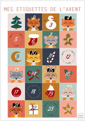 DIY - ÉTIQUETTES CALENDRIER DE L'AVENT Matériel : • les 24 étiquettes, téléchargeables ici • 1 feuille de papier autocollant (ou autre si vous souhaitez en faire des étiquettes à accrocher ou des magnets) • des ciseaux (ou une perforatrice si vous souhaitez les découper en ronds) Étapes :1 • Imprimer les étiquettes sur le papier autocollant • Découper les étiquettes aux ciseaux (ou à la perforatrice si vous souhaitez des ronds) Ça y est, vos étiquettes calendrier de l’Avent sont prêtes ! Vous pouvez les coller sur un calendrier en bois ou directement sur les paquets de chaque petit cadeau de l'Avent ;)