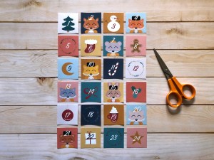 Ce DIY est ultra simple, il suffit juste de découper les 24 étiquettes (telles quelles ou en version rond avec une perforatrice). J’ai personnellement choisi du papier autocollant pour pouvoir les coller directement, mais vous pouvez aussi les imprimer sur du papier bristol pour les accrocher à des paquets ou sur du papier magnétique pour les accrocher au frigo par exemple. Alors à vos ciseaux !
