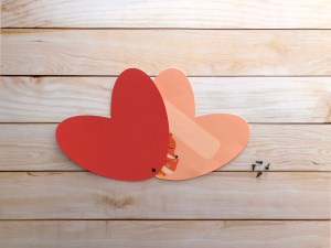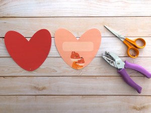 2 • Assembler les deux cœurs à l'aide d'une attache parisienne, le cœur rouge devant l'autre cœur Ça y est, la carte cœur est prête à être personnalisée par vos enfants avec un message plein d'amour (et à être décorée avec des paillettes ou petites gommettes s'ils sont d'humeur créative ;))