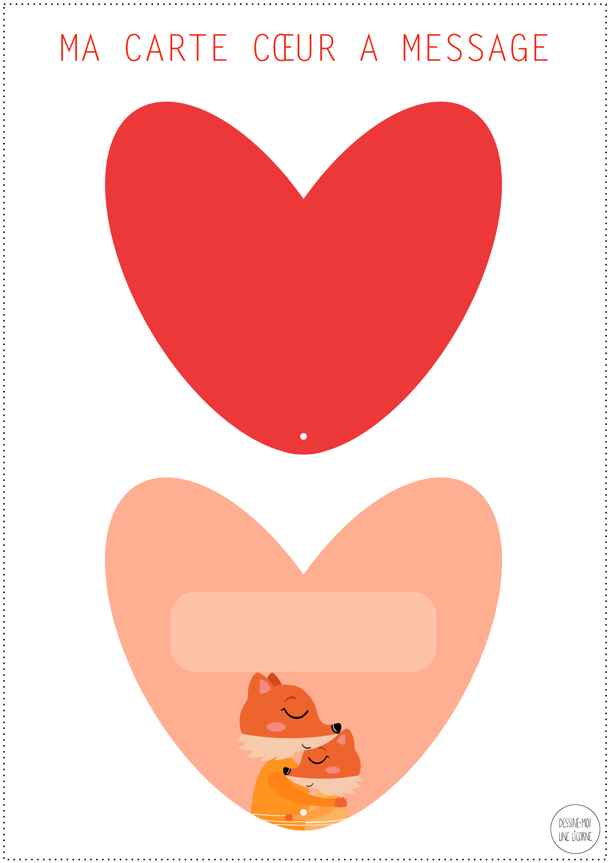 DIY - CARTE CŒUR À MESSAGE Matériel : • la planche de la carte téléchargeable ici • 1 feuille de papier bristol • des ciseaux • une perforatrice • 1 mini attache parisienne (j'ai personnellement utilisé celle-là) • un stylo pour écrire le message Étapes :1 • Imprimer la planche sur du papier bristol • Découper tous les éléments aux ciseaux • Percer les trous en bas des cœurs à la perforatrice