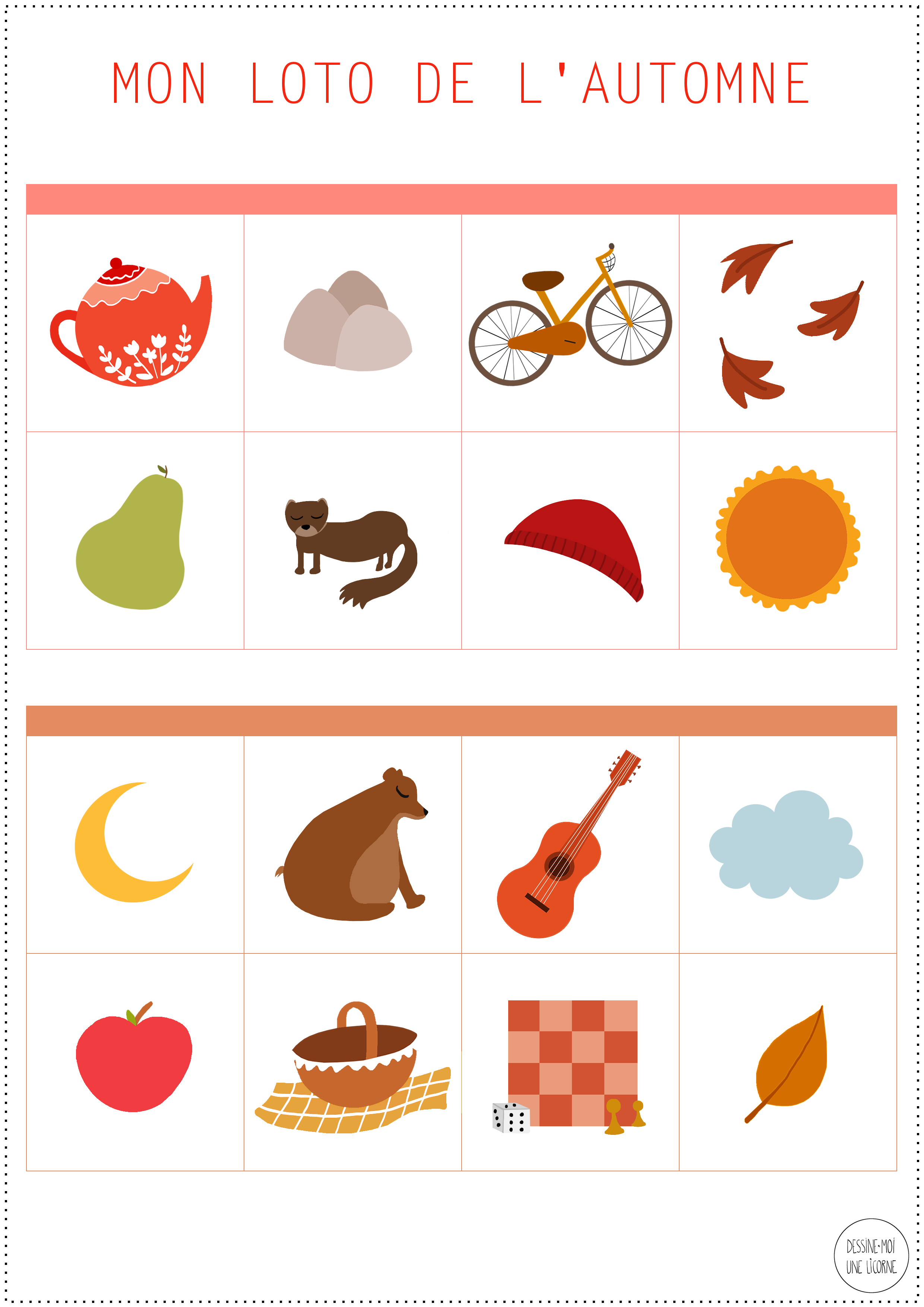 Comme vous le savez, je suis toujours en recherche de jeux et activités pour occuper mon fils (vous trouverez les nombreux jeux que j’ai déjà proposés ici) et le loto est un de ses jeux préférés du moment ! Après le loto du printemps et celui de l’été, il était donc tout naturel que je vous propose ici la version de l’automne !