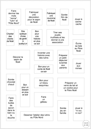 Je vous ai mis la liste des 24 surprises en dessous, mais je vous ai également prévu une petite planche vierge si vous souhaitez écrire vos propres surprises :)