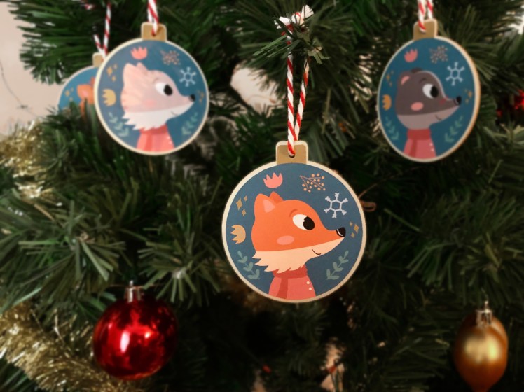 Pour les décorations du sapin j’ai voulu innover cette année, en vous proposant des boules décoratives à accrocher au sapin ! Sur chacune des 4 décorations, le visage d’un des personnages qui étaient présents sur le calendrier de l’Avent, entouré de végétaux, flocons et petites étoiles. Ce DIY a été prévu avec un support en bois, mais vous pouvez également si vous le souhaitez le réaliser en papier uniquement, comme les autres décorations que je vous propose habituellement sur le blog !
