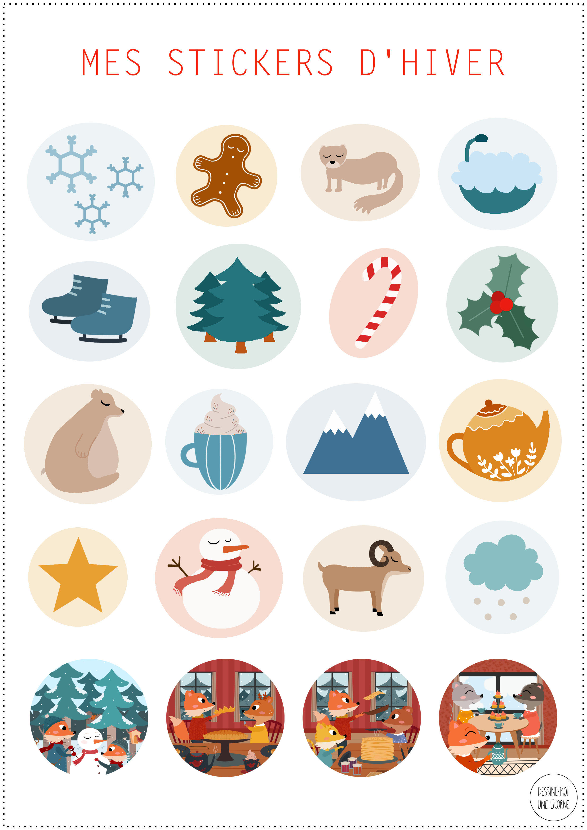 J’espère que vous allez bien ! Après les stickers aux couleurs de l’automne, je vous propose aujourd’hui un DIY très facile et rapide à faire : des stickers aux couleurs de l’hiver ! Il vous suffit d’imprimer la planche des 20 stickers sur du papier autocollant (ou sur du papier magnétique si vous préférez des magnets ;) et de découper le tout ! ;)
