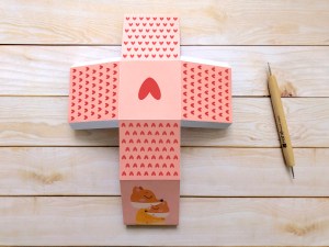 De forme cubique et avec sa petite languette, la boîte peut s’ouvrir et se refermer comme bon vous semble ! Mais vous pouvez aussi très bien coller la languette supérieure pour former un joli cube décoratif ! :)